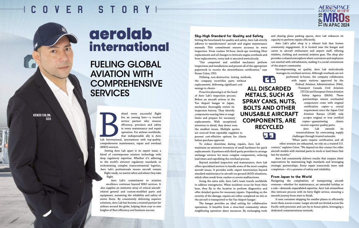 에어로랩은 Aerospace & Defense Review를 통해 아시아 태평양 지역의